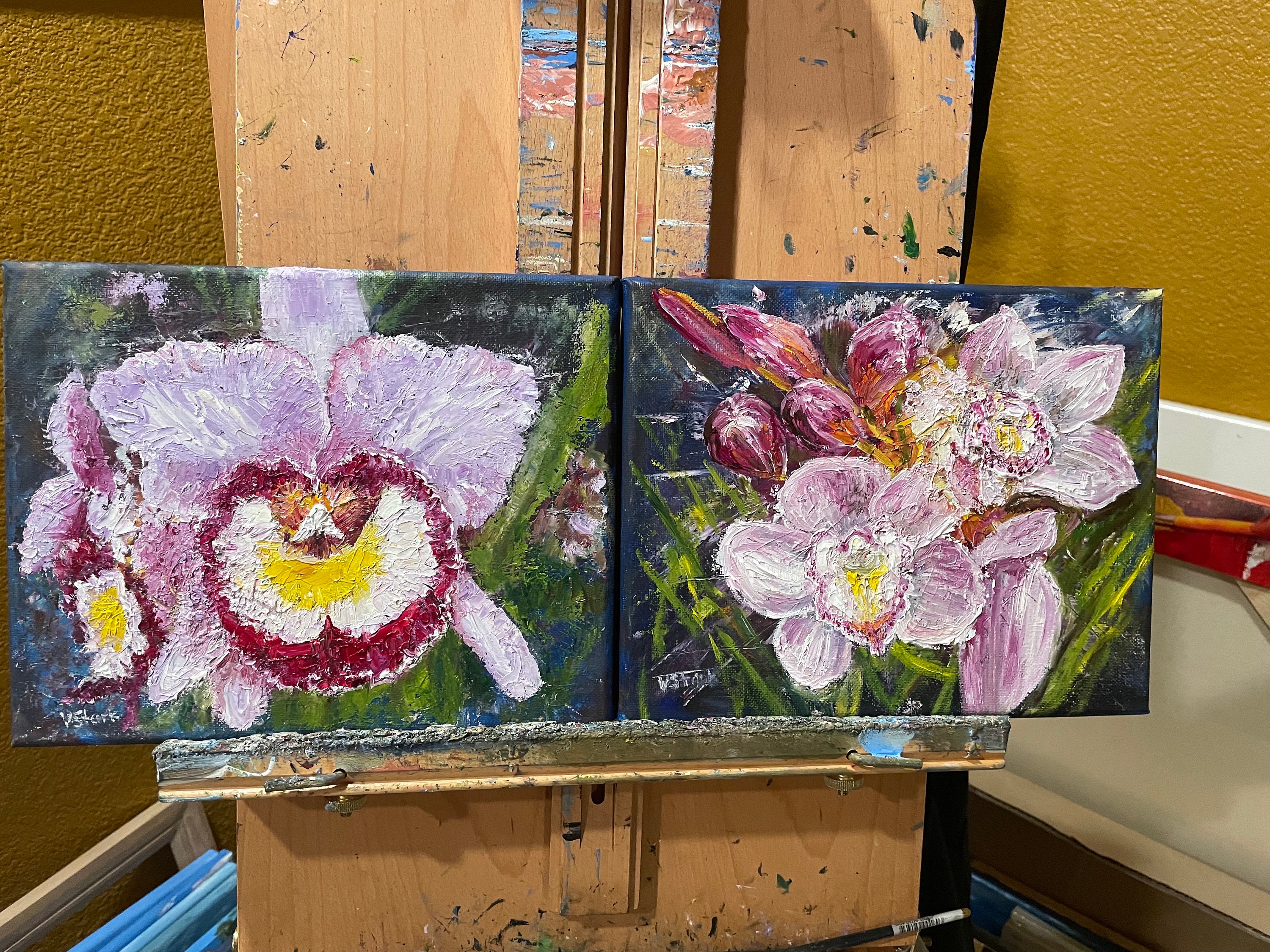 Pink Orchids original oil painting is painted with a palette knife and a brush and is 100% hand painted.